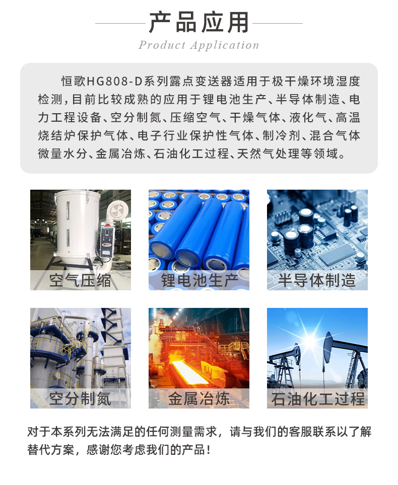 HG808-D系列在線露點(diǎn)測量儀結(jié)合了高品質(zhì)濕敏元件和先進(jìn)校準(zhǔn)技術(shù),非常適用于極干燥環(huán)境的露點(diǎn)測量,露點(diǎn)范圍涵蓋-60~90°℃,并且實(shí)現(xiàn)+2°℃ Td高精誤差。也正因變送器在干燥環(huán)境下對(duì)微水靈敏的感知能力,常被用于需要對(duì)環(huán)境濕度進(jìn)行精確控制的場合,,例如鋰電池研究生產(chǎn)、半導(dǎo)體應(yīng)用、壓縮空氣干燥設(shè)備出氣口、手套箱微水檢測等場景。