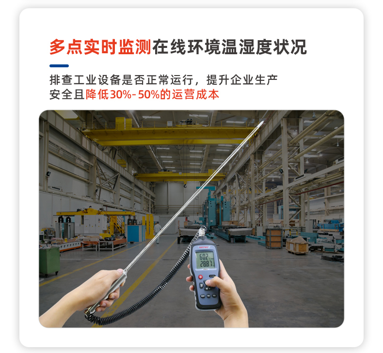 HG982手持分體式高溫溫濕度巡檢儀是一款專為高溫工業環境需求設計的高精度測量儀器。在高溫環境80~120°C下測量表現出眾。在濕度范圍0-100%RH,且露點溫度-30~80°CTd的友好環境下使用,具備卓越的高精度、高準確性、快速的數據采集與反饋能力,以及無與倫比的長期穩定性,在現場精準測量方面表現出色,長桿分體探頭對難以觸及或復雜的測量環境提供了多元化且安全的測量方式,備受工業用戶認可的高溫濕度巡檢儀。